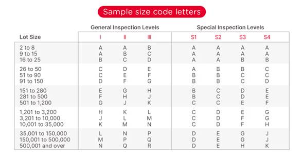 2. Inspection level: Different inspection levels will command different numbers of samples to inspect. In this article, we will stick to the so-called “level II” under “normal severity” and to single sampling plans.