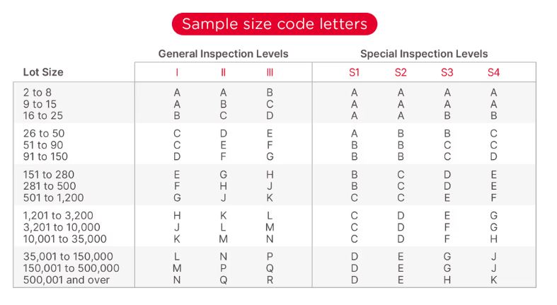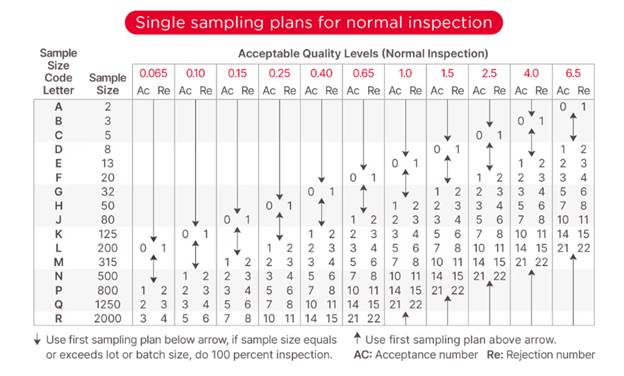 2. Inspection level: Different inspection levels will command different numbers of samples to inspect. In this article, we will stick to the so-called “level II” under “normal severity” and to single sampling plans.